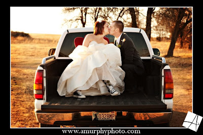An onlooker might have thought it a little strange to see April and I trekking down a dirt road with a Maggie Sotera wedding gown. But that’s where the best tree was. All in a day’s work!
