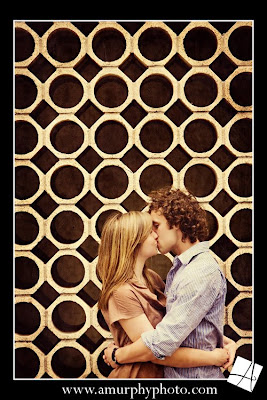Allie & Zac are just too fun! And they were an absolute breeze to photograph! Allie was a bridesmaid in Kristin’s wedding. (I love referals from awesome brides!!) Allie and Zac are planning on tying the knot in September at the Barn, and I can’t wait. After getting to know them I just know their wedding is going to be fabulous! I’m so glad I get to work with such fun people that are totally into the whole experience! We headed downtown for their e-session. It was one of those days where we had a nice break from the hot weather.